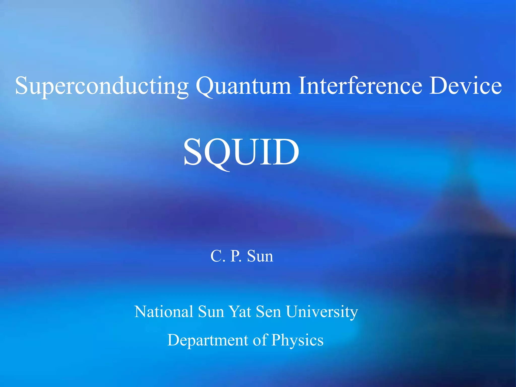 The document discusses the Superconducting Quantum Interference Device (SQUID), which uses the Josephson junction effect to achieve extremely sensitive magnetic flux-to-voltage conversion. SQUIDs can be used to precisely measure small magnetic fields and currents. The document outlines how SQUIDs work and their applications in measuring DC and AC magnetic fields. It also describes temperature control systems, reciprocating sample options (RSO), and considerations for optimizing RSO measurements.