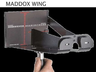 - Maddox rod test for detecting horizontal and vertical phorias
