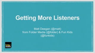 The document discusses strategies for increasing listeners for student radio stations, highlighting the importance of marketing alongside programming. It emphasizes the competitive landscape, noting the presence of other media vying for audience attention and the need for effective content marketing. Key points include analyzing owned, earned, and paid content, as well as exploring collaboration through contra agreements.