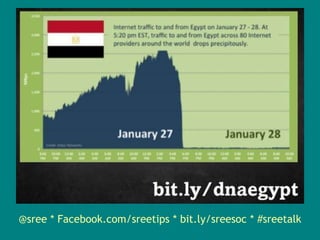 The document contains notes from a talk or presentation about social media trends and best practices. It includes tips on managing multiple social media accounts, tools for social media alerts, new features on LinkedIn, and recommends following various blogs and news sites for staying informed on digital topics. The speaker is identified as Prof. Sree Sreenivasan and his social media handles are provided.