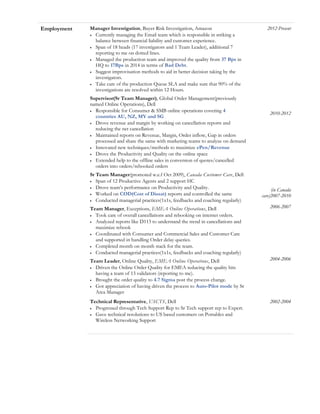 Sreevikram Subramanian has over 12 years of experience in people management roles across various industries including e-commerce, technology, and customer service. He has a track record of transitioning teams successfully, improving metrics like quality and reducing defects. Currently he manages an email investigations team at Amazon with a focus on balancing customer experience and financial risk.