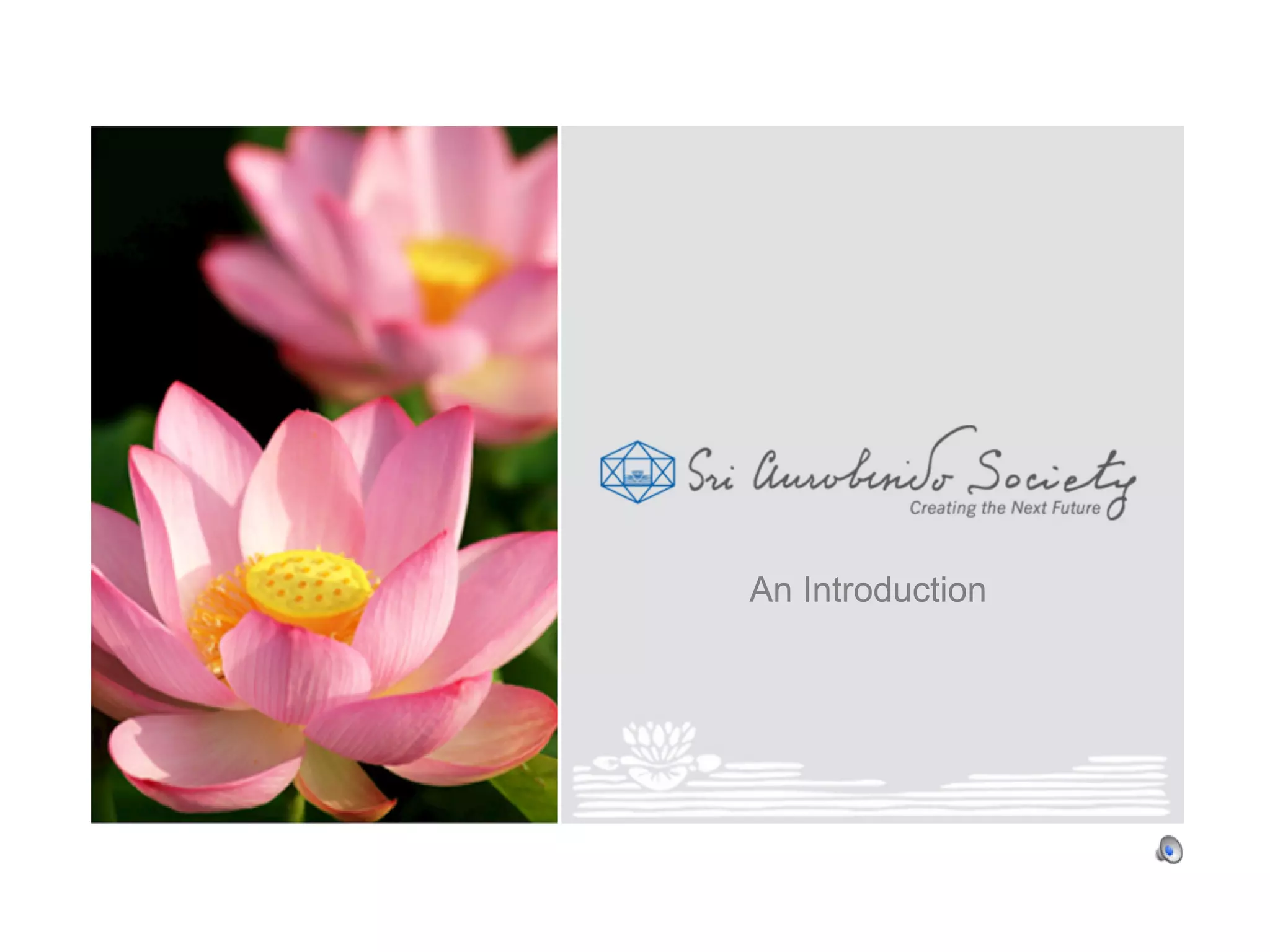This document provides an overview of the Sri Aurobindo Society, its objectives, activities, and programs. The Society was founded in 1960 by the Mother to bring together those dedicated to participating in the birth of a new world and humanity. Its main objectives are the integral growth and perfection of the individual, social transformation, realizing human unity, and offering India's best to the world. The Society's many fields of activity include education, rural development, health, leadership, culture, and more. It aims to integrate spiritual values and truth into all aspects of life and society through diverse programs, research, publications, and more.