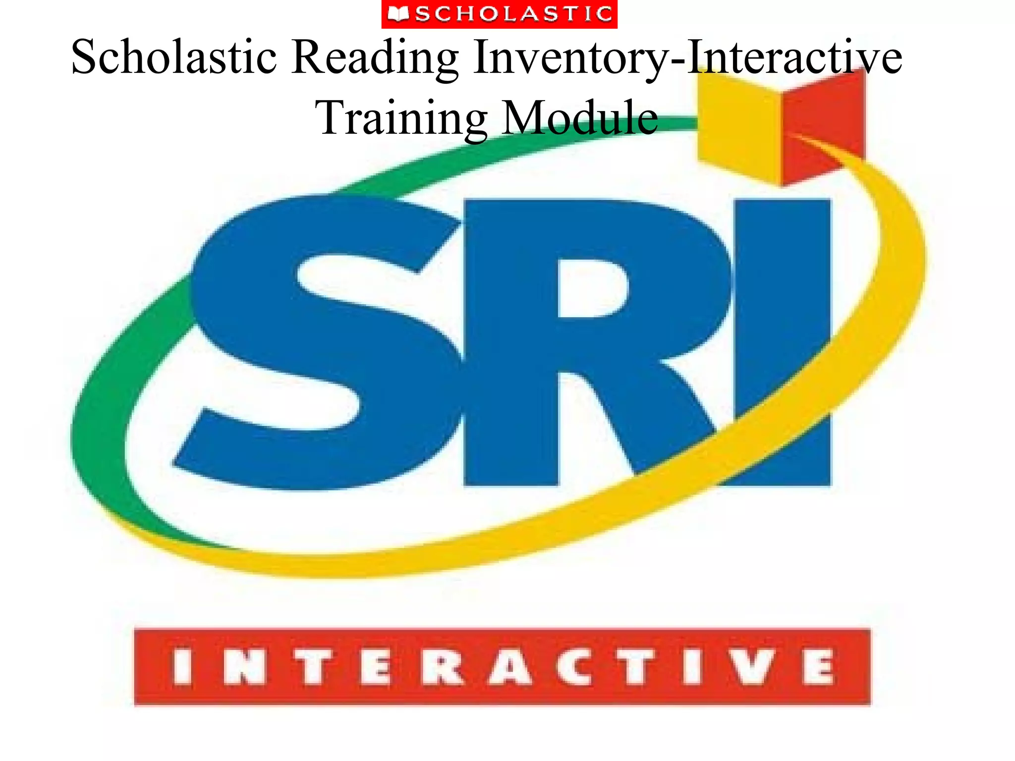 The SRI Interactive is an assessment that measures students' reading levels using Lexiles. It is a computer-adaptive test that students take independently. It provides a recommended reading list tailored to each student's interests and reading ability based on their scored Lexile level. The test takes approximately 20-30 minutes for most students to complete.