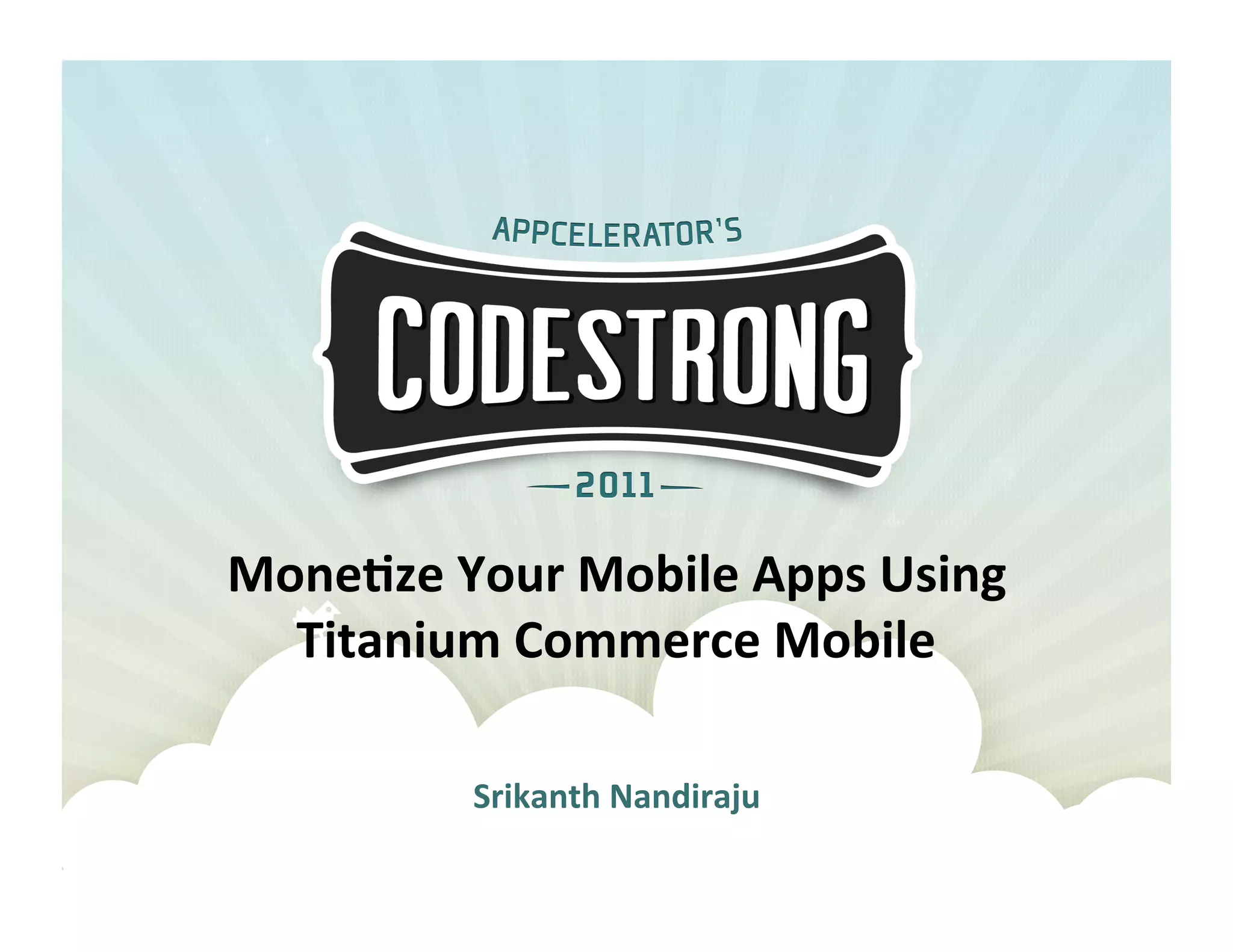 The document provides a guide for monetizing mobile apps using the Titanium Commerce platform and PayPal payments. It includes instructions on integrating the PayPal module, handling payment callbacks, and next steps for account setup and app submission. Additionally, it emphasizes the importance of understanding the PayPal developer agreement and offers resources for further assistance.