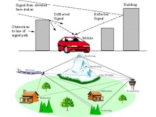 - Radio waves are transmitted from antennas and can propagate through line of sight transmission, reflection off the ionosphere (skywaves), or along the ground (groundwaves).