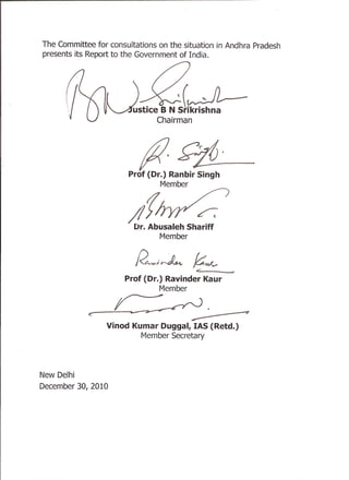 The 'Committee for Consultations on the Situation in Andhra Pradesh' report from December 2010, chaired by former Supreme Court Justice B.N. Srikrishna, investigates the demand for a separate Telangana state versus maintaining a united Andhra Pradesh. The committee conducted extensive research and consultations with various stakeholders, highlighting historical, economic, and sociological issues relevant to the state. Ultimately, while acknowledging valid reasons for separation, the committee leaned towards keeping Andhra Pradesh united, emphasizing the need for balanced governance and resolution of regional disparities.
