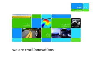 CMCL Innovations provides modeling software and consulting services focused on predictive combustion modeling. Their modeling philosophy uses integrated data, application, and optimization models. Their software suite, SRM, can model combustion, emissions, fuels and fuel reformation, injection systems, and in-cylinder processes through integrated fluid dynamics and chemistry models. Customers choose SRM for its ability to predict emissions and combustion trends, model critical in-homogeneities faster than CFD, seamlessly couple with third party tools, and help design optimizations. CMCL provides examples of SRM helping optimize diesel engine design for emissions and efficiency.