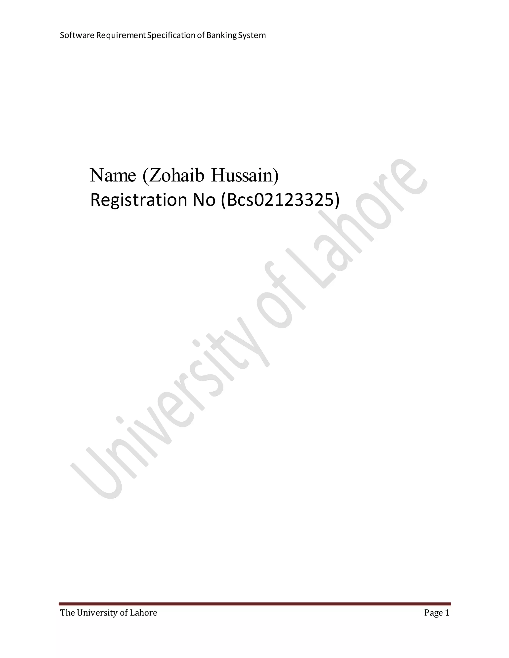 The document provides a software requirement specification for an online banking system. It outlines the system's overall description, product functions, specific requirements, and software attributes. The system allows customers to perform transactions like deposits, withdrawals, funds transfers, and check balances online through a web interface. It also includes administrative functions for user account management. The system interfaces with a central bank server to store user data and authenticate access.