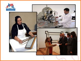 This document summarizes the Support to Research and Technological Development and Innovation Initiatives and Strategies in Jordan project. The 3-year EU-funded project aims to strengthen knowledge transfer between science and business in Jordan through various activities. These include establishing focal points to link universities, research centers, and SMEs; highlighting success in FP7 programs; and providing workshops, grants, and incubators to support research and innovation.