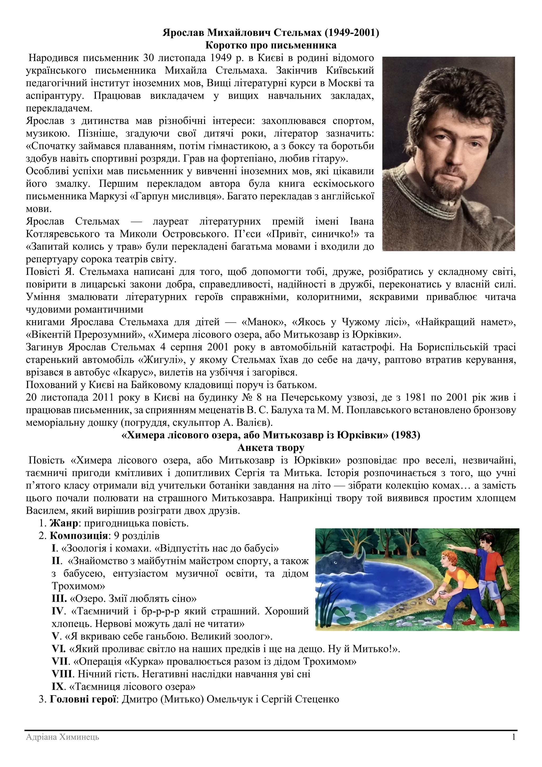 Я.Стельмах "Химера лісового озера, або Митькозавр з Юрківки"