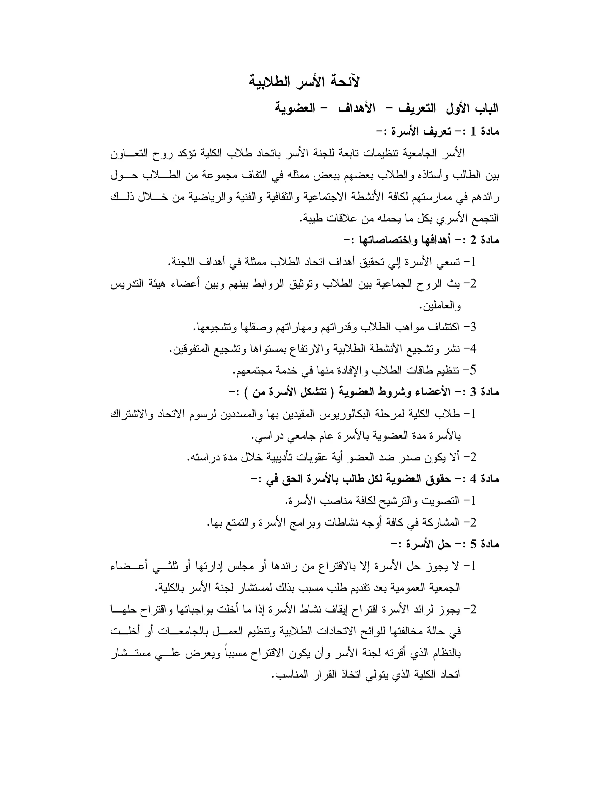 لائحة الاسر الطلابية لطلاب الجامعات الحكومية والخاصة