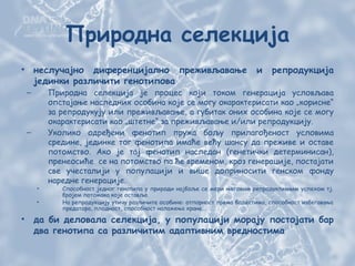 – Природна селекција је процес који током генерација условљава