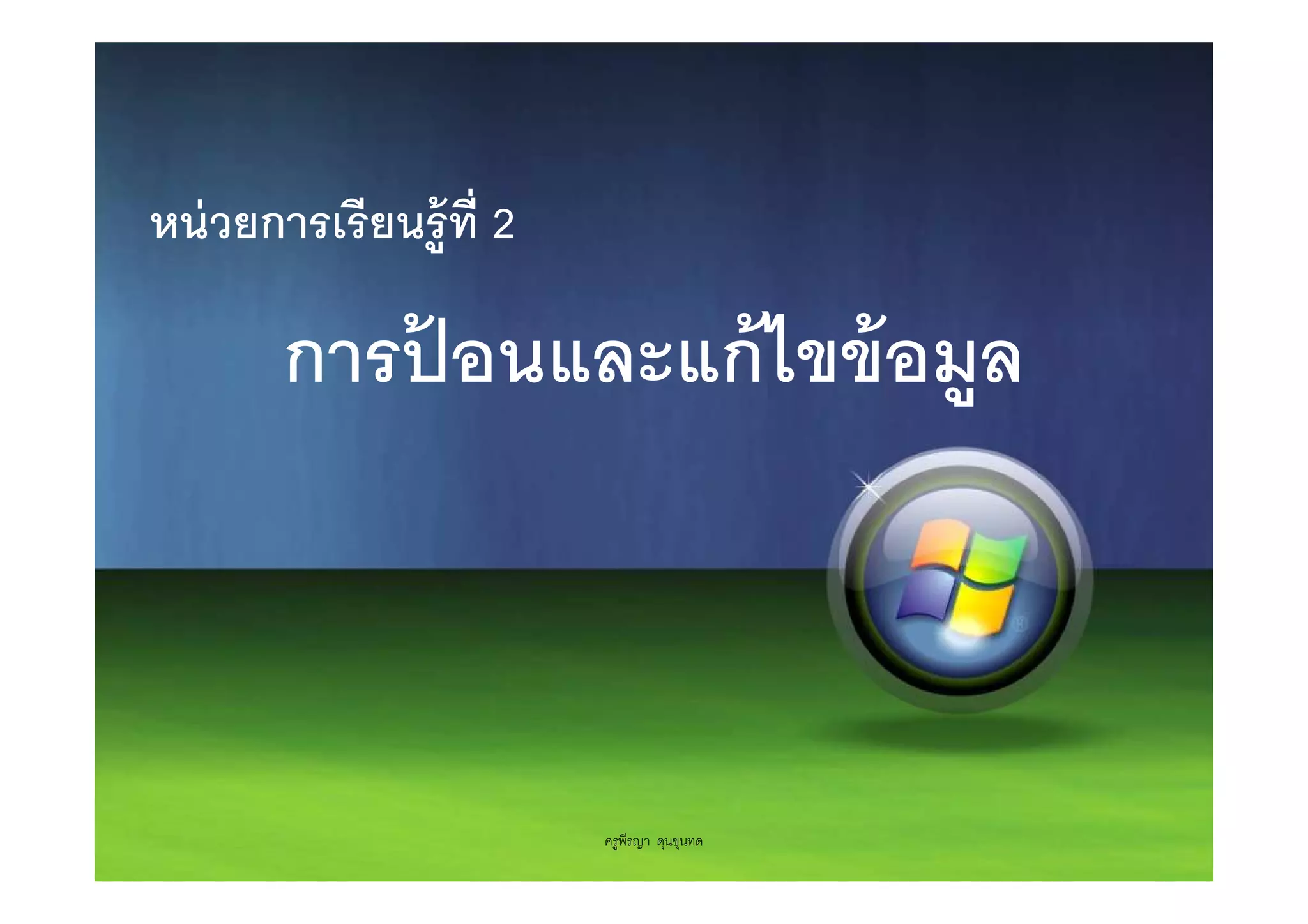 ที 2 การปอนและแก้ ไขข้ อมูล ้ ครูพีรญา ดุนขุนทด