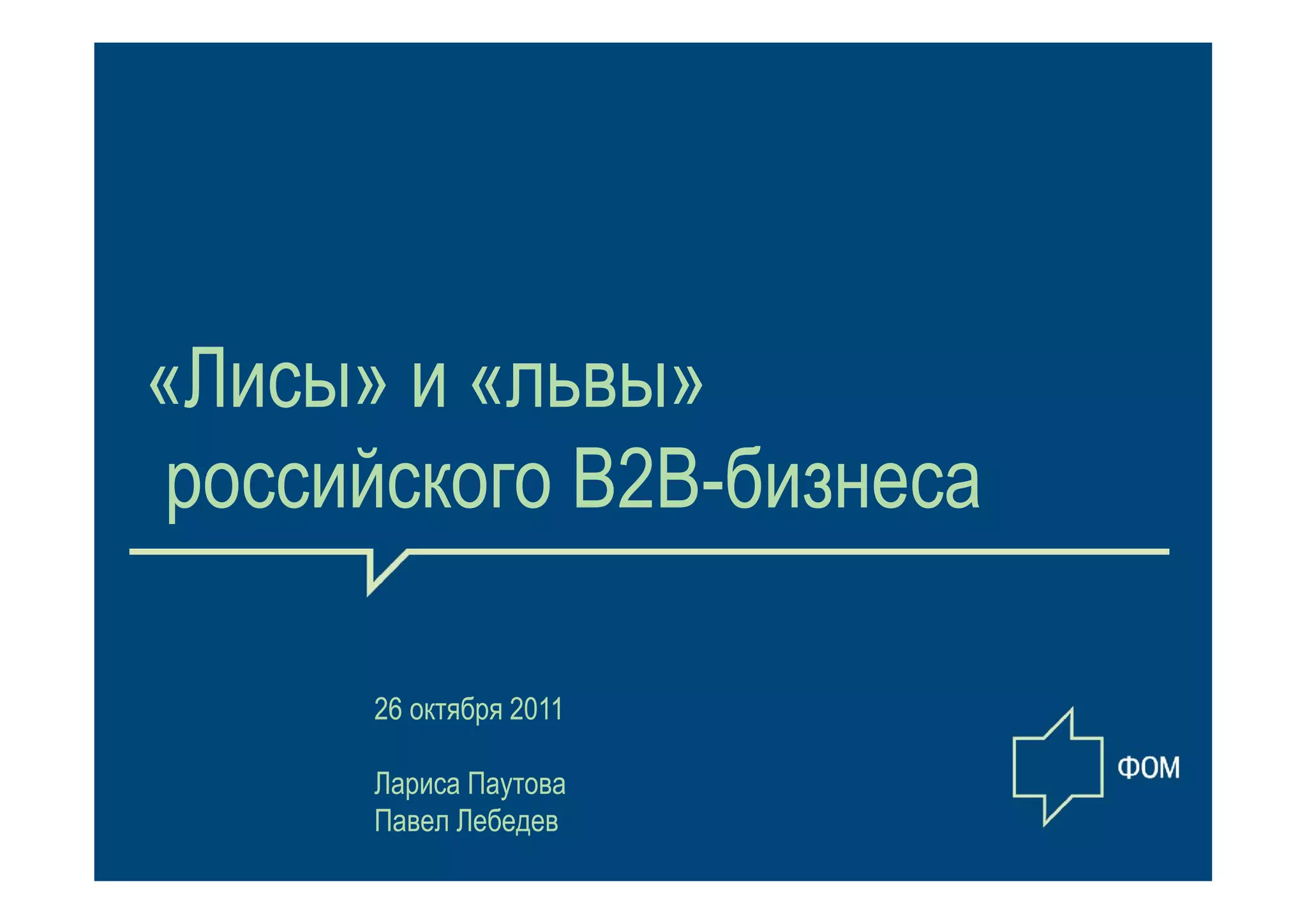 Документ анализирует состояние российского B2B-бизнеса, выделяя проблемы, такие как высокие налоги и бюрократия, а также подчеркивает важность клиентоориентированности. В нём рассматриваются различные стратегии работы с клиентами, деля компании на 'львов' и 'лис', в зависимости от подходов к ведению бизнеса. Исследование выявляет влияние культуры межличностных отношений на успешность компаний и необходимость стратегического подхода к клиентскому обслуживанию.