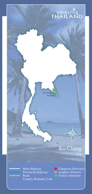 Документ описывает остров Ко Чанг в Таиланде, его живописные пляжи, богатую природу и возможности для активного отдыха, включая дайвинг и треккинг. Остров, часть национального парка Му Ко Чанг, предлагает разнообразие жилья и доступ к другим близлежащим островам. Ко Чанг стал популярным туристическим направлением благодаря своей инфраструктуре и естественной красоте.