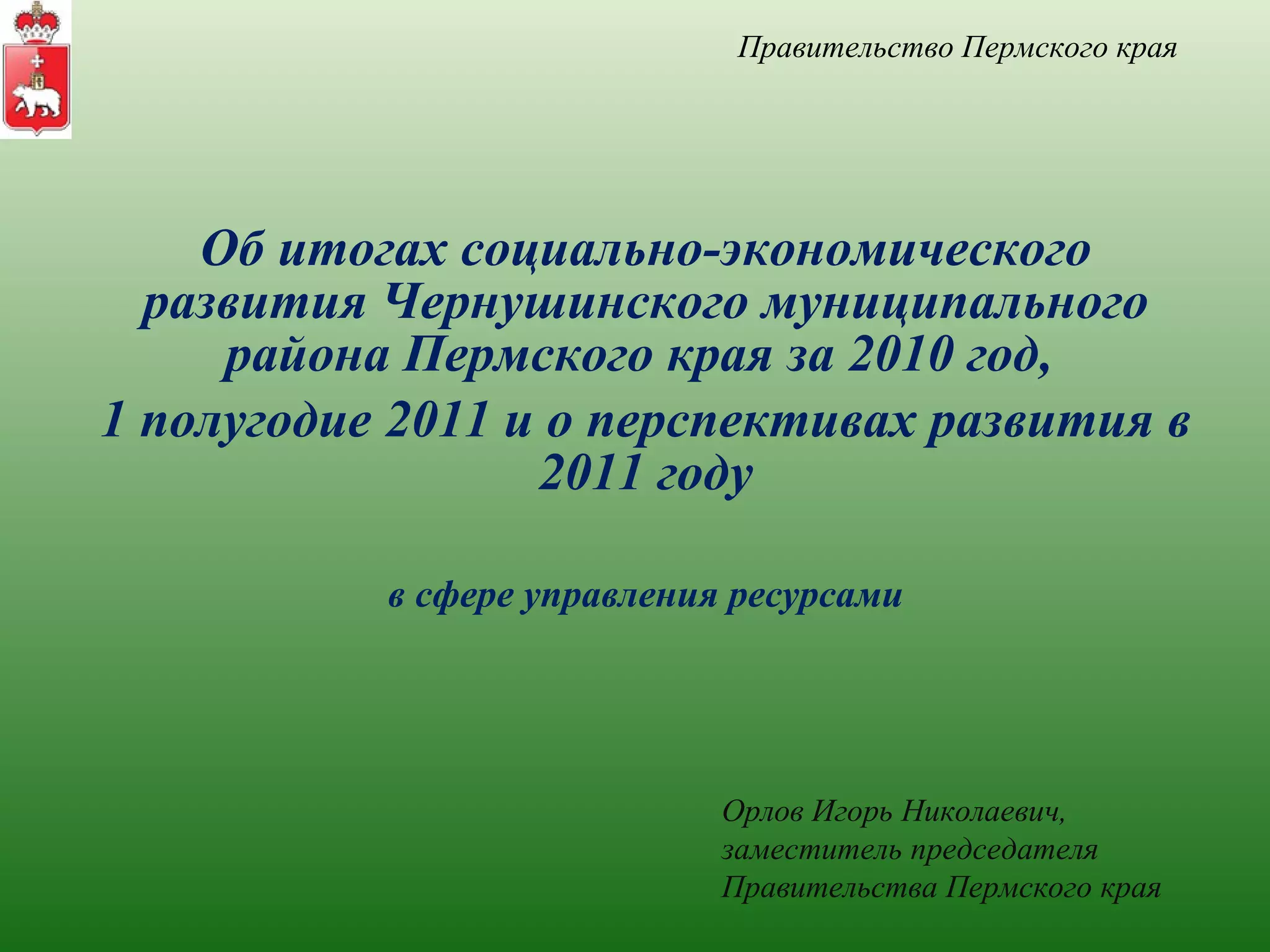 Документ содержит обзор социально-экономического развития Чернушинского муниципального района за 2010 год и первое полугодие 2011 года. Рассматриваются доходы от использования земельных ресурсов, динамика дебиторской задолженности, а также рейтинги района по различным показателям, связанным с гидротехническими сооружениями и охотничьим хозяйством. Упоминается также заготовка древесины населением и количество проданных объектов, что свидетельствует о состоянии местной экономики.