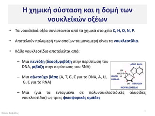 • Σα νουκλεϊκά οξζα ςυνίςτανται από τα χθμικά ςτοιχεία C, H, O, N, P.