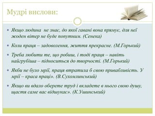 мрії – краса праці». (В.Сухомлинський)