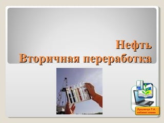 Документ описывает процессы вторичной переработки нефти, включая крекинг, риформинг и пиролиз. Крекинг позволяет превращать углеводороды с длинной цепью в более легкие, а риформинг улучшает качество бензинов и производит ароматические углеводороды. Пиролиз используется для глубокой термической переработки, создавая ценные газообразные продукты и полимеры.