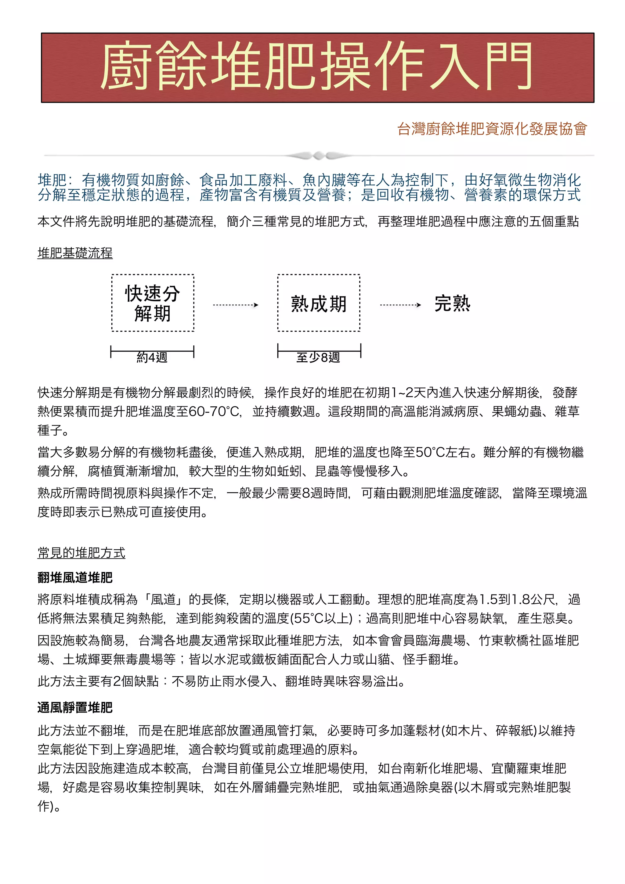 堆肥是利用好氧微生物对有机物质进行消化分解的过程,转化为富含有机质和营养的产物。成功的堆肥过程依赖于适当的温度、氧气和氮的比例,最佳温度为55-70°C,以促进微生物的活跃生长并消灭病原。若温度过高则需翻堆增加通气以降低温度,确保微生物生存和活跃。