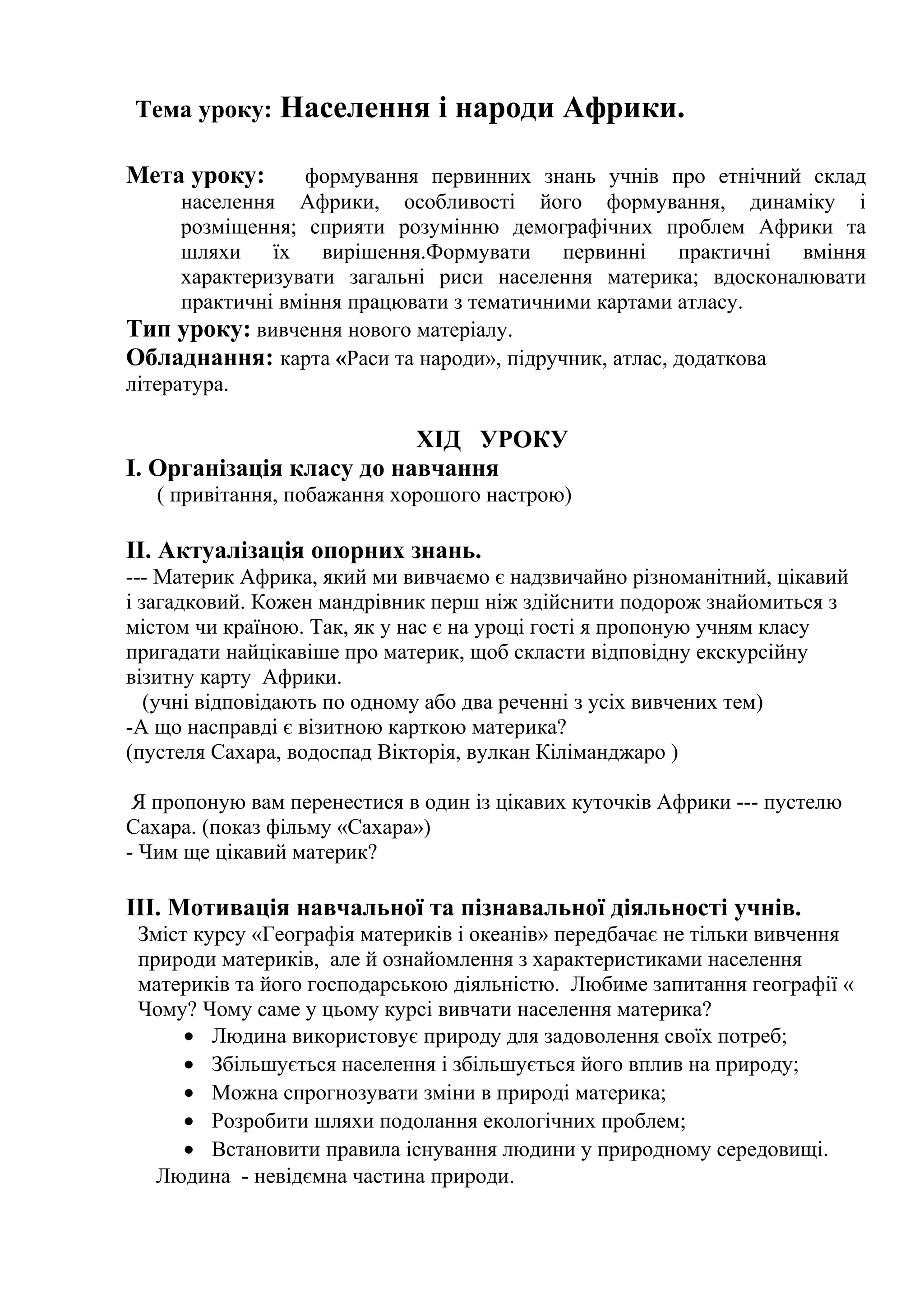 природи материків, але й ознайомлення з характеристиками населення