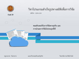 คอมพิวเตอร์กับการวิจัยทางธุรกิจ และ การนาผลการวิจัยไปประยุกต์ใช้ วิชาโปรแกรมสาเร็จรูปทางสถิติเพื่อการวิจัย ครูฌามาดา จันดาอาจ