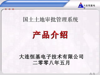 大连恒基电子技术有限公司成立于1997年,是高新技术企业,专注于软件开发、系统集成等领域。其开发的国土土地审批管理系统具有稳定性、安全性和易操作性,通过信息化手段满足政府对国土资源管理的需求。该系统已正式运行并稳定,获得用户好评,体现了显著的经济和社会效益。