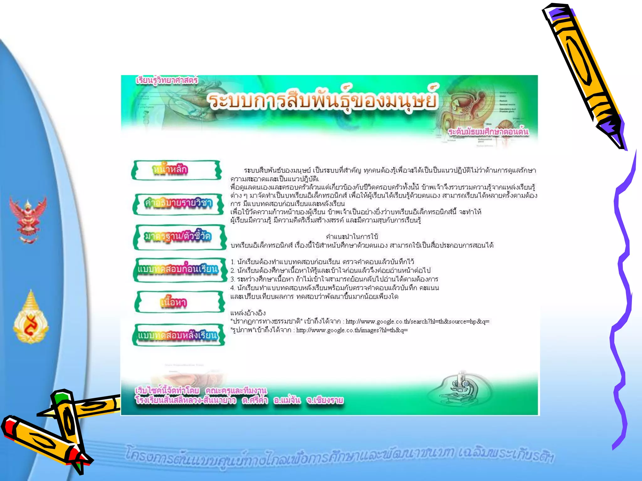 • ส่ งเสริ มการทาเวปไซต์ การเรี ยนรู ้ ตามโครงการเกษตรพอเพียงของ