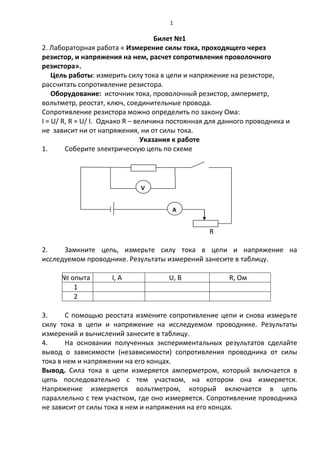 Документ представляет собой набор лабораторных работ, связанных с изучением электричества и тепла. Каждая лабораторная работа имеет конкретную цель, оборудование и описывает процедуры, направленные на получение и анализ экспериментальных данных. Основные темы охватывают измерение электрических токов и напряжений, наблюдение магнитных полей, расчет мощности и теплообмена, а также исследование силы трения.