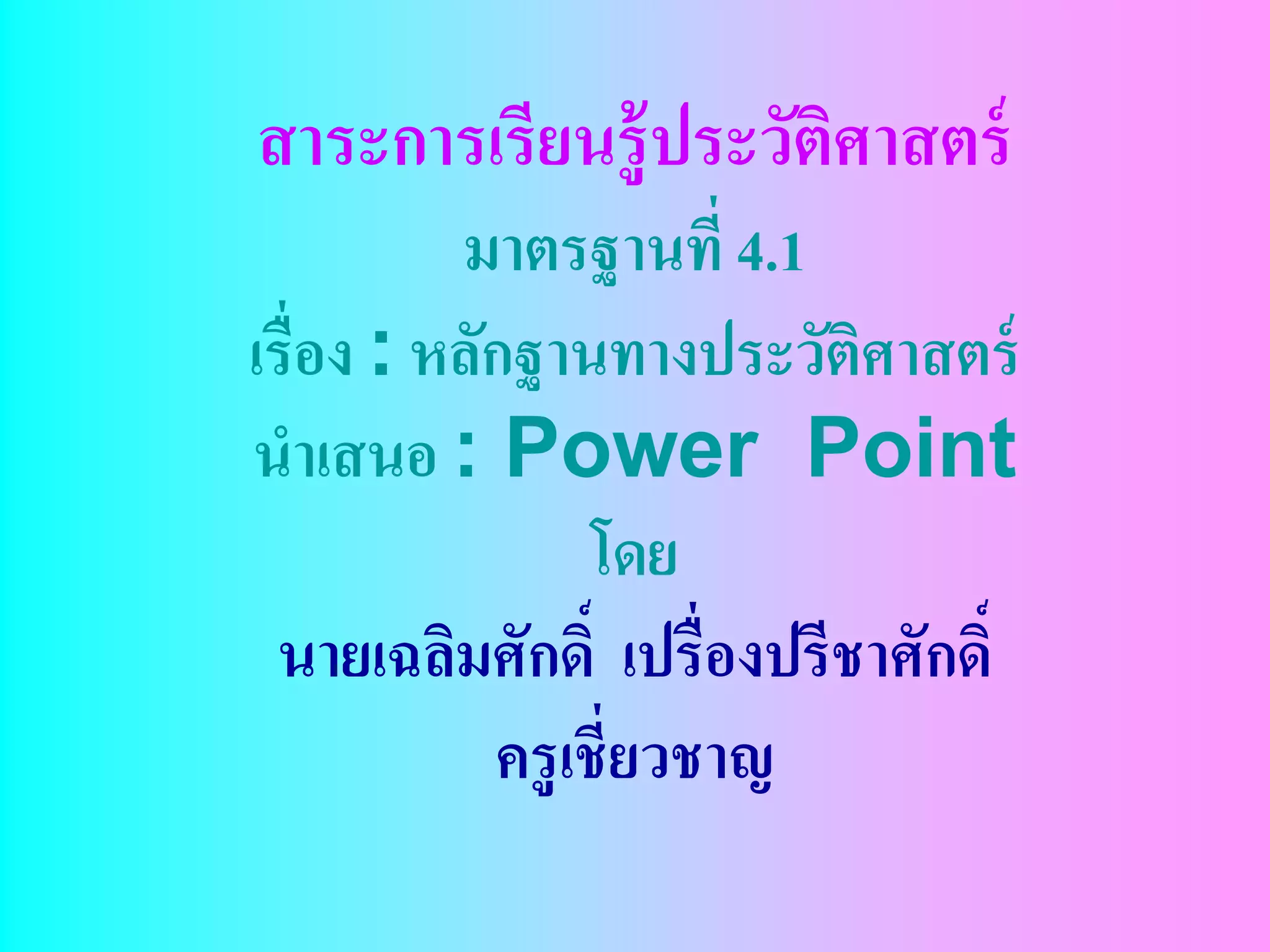 ิ มาตรฐานที่ 4.1 เรื่อง : หลักฐานทางประวัติศาสตร์ นาเสนอ : Power Point โดย นายเฉลิมศักดิ์ เปรื่องปรีชาศักดิ์ ครู เชี่ยวชาญ