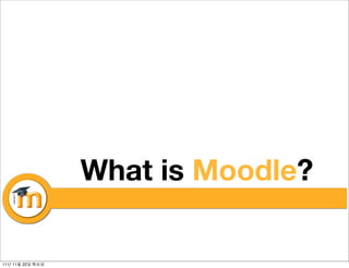 Moodle is an open-source learning management system (LMS) that can be used to create online courses with quizzes, assignments and forums. It has over 54,000 active sites used by 44 million users in 209 countries. Moodle allows for flexible, customizable courses that support different learning styles and needs through dynamic blocks and content. It has a unique editing mode and interface available in almost 86 languages.
