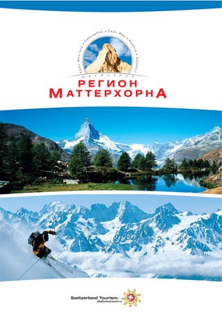 Документ описывает туристические возможности курортов в регионе Маттерхорн в Швейцарии, таких как Кран-Монтана, Лейкербад, Вербье и Сас-Фее. Каждый курорт предлагает разнообразные виды активного отдыха, включая термальные процедуры, горные лыжи и спортивные мероприятия, а также богатую инфраструктуру для отдыха и развлечений. Указаны особенности каждого курорта, такие как доступность, архитектура и гарантированное качество снега, что делает их привлекательными для туристов в любое время года.