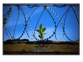 新生命 一、與神和好的生命 「我們原是上帝的仇敵,但是藉著他兒子的死 叫我們得以跟他和好。既然跟他和好,我們豈不更 藉著基督的生命而得拯救嗎?」(羅馬書5:10) 「因為,上帝所賜的靈不是要奴役你們,使你們仍 在恐懼中,而是要使你們有上帝兒女的名份。藉著 聖靈,我們向上帝呼叫:「阿爸!我的父親!」 (羅馬書8:15)