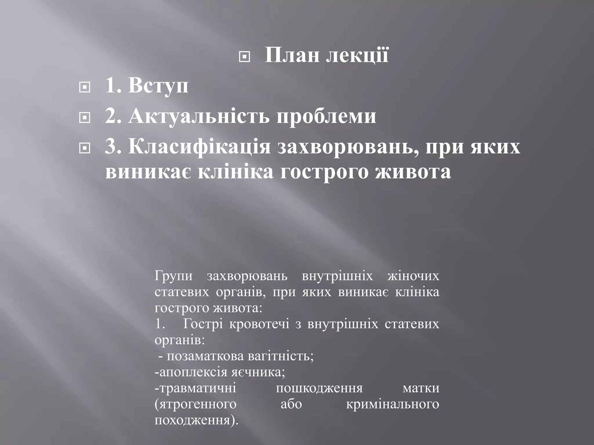 1. Гострі кровотечі з внутрішніх статевих органів: