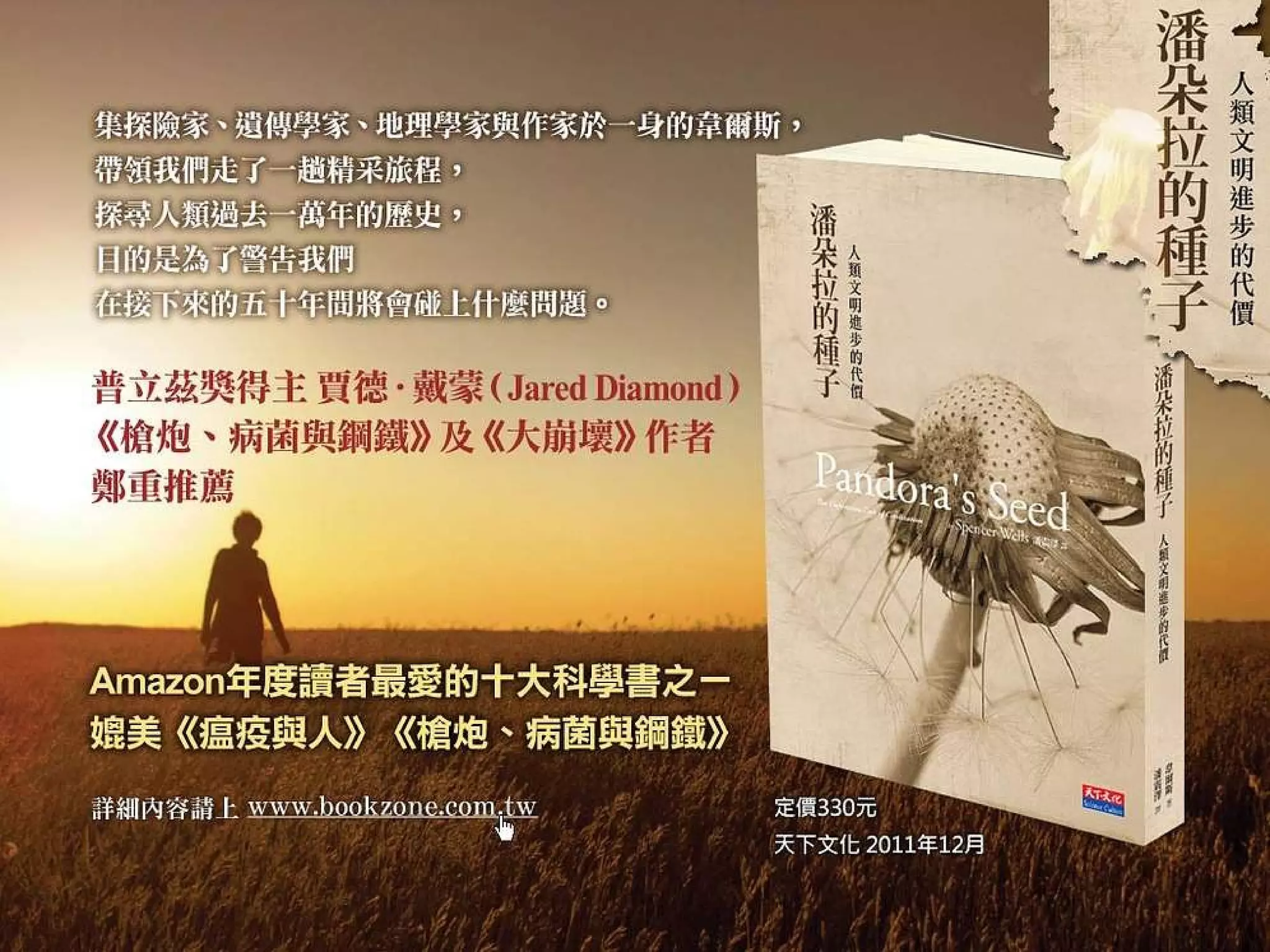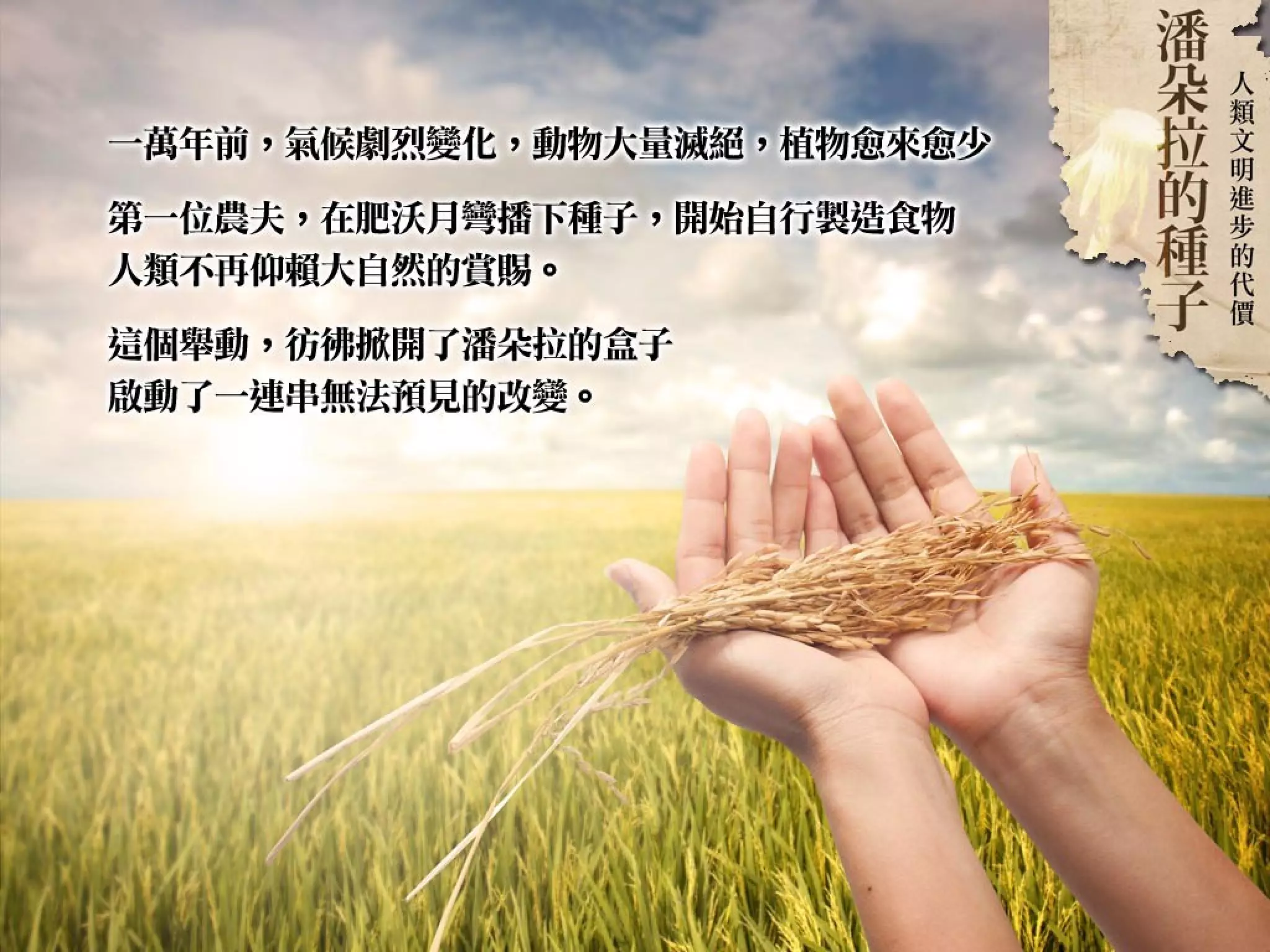一萬年前,第一位農夫在肥沃月彎播下種子,彷彿掀開了潘朵拉的盒子,從此,人類這個物種在生活方式上做了根本的改變,啟動了一連串無法預見的改變。