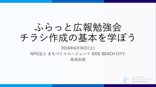 特定非営利活動法人 まちづくりエージェント SIDE BEACH CITY. ふらっと広報勉強会 チラシ作成の基本を学ぼう 2018年6月30日(土) NPO法人