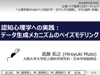 広島ベイズ塾第三回ワークショップ「心理学者のためのベイズ統計学:モデリングの実際と,モデル選択・評価」(2018年6月30日,専修大学)で発表した資料です。一部のスライドは非公開にしています。