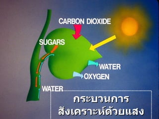 The location andstructure of chloroplasts แหล่งที่เกิดการสังเคราะห์ด้วยแสงในพืช ใบของพืชจะเป็นแหล่งที่มีการสังเคราะห์ด้วยแสงมากที่สุดในพืช สีเขียวของใบได้จากสีของคลอโรฟิลล์แล้วทำให้เกิดการสร้างโมเลกุลอาหารในคลอโรพลาสต์
