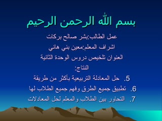 يتناول المستند طرق حل المعادلات التربيعية المختلفة، بما في ذلك التحليل والتمثيل البياني وإكمال المربع. كما يتم استعراض أمثلة عملية لفهم كيفية تحديد أصفار الاقتران والتوصل لحلول المعادلات. يتضمن المستند أيضًا مراجعة لبعض المفاهيم الأساسية المتعلقة بالاقترانات التربيعية.