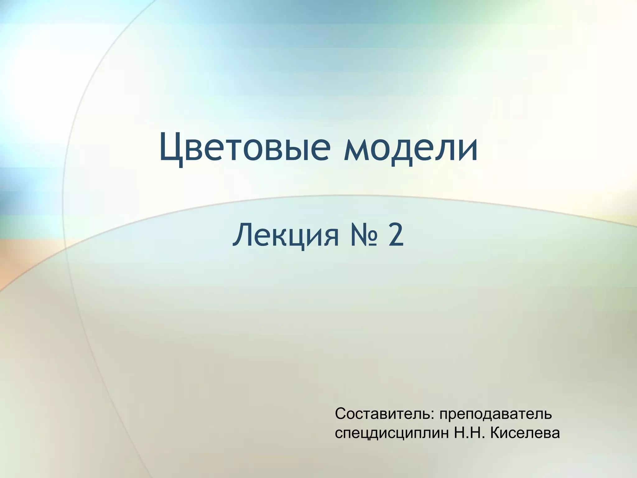 Документ представляет собой лекцию о цветовых моделях, которые используются для определения и воспроизведения цвета в различных устройствах, таких как мониторы и принтеры. Рассматриваются основные цветовые модели: RGB, CMYK, HSB и Lab, их характеристики, преимущества и недостатки, а также принципы их работы. Обсуждаются также понятия цветового разрешения и цветоделения, а также способы подбора цветов для веб-сайтов.
