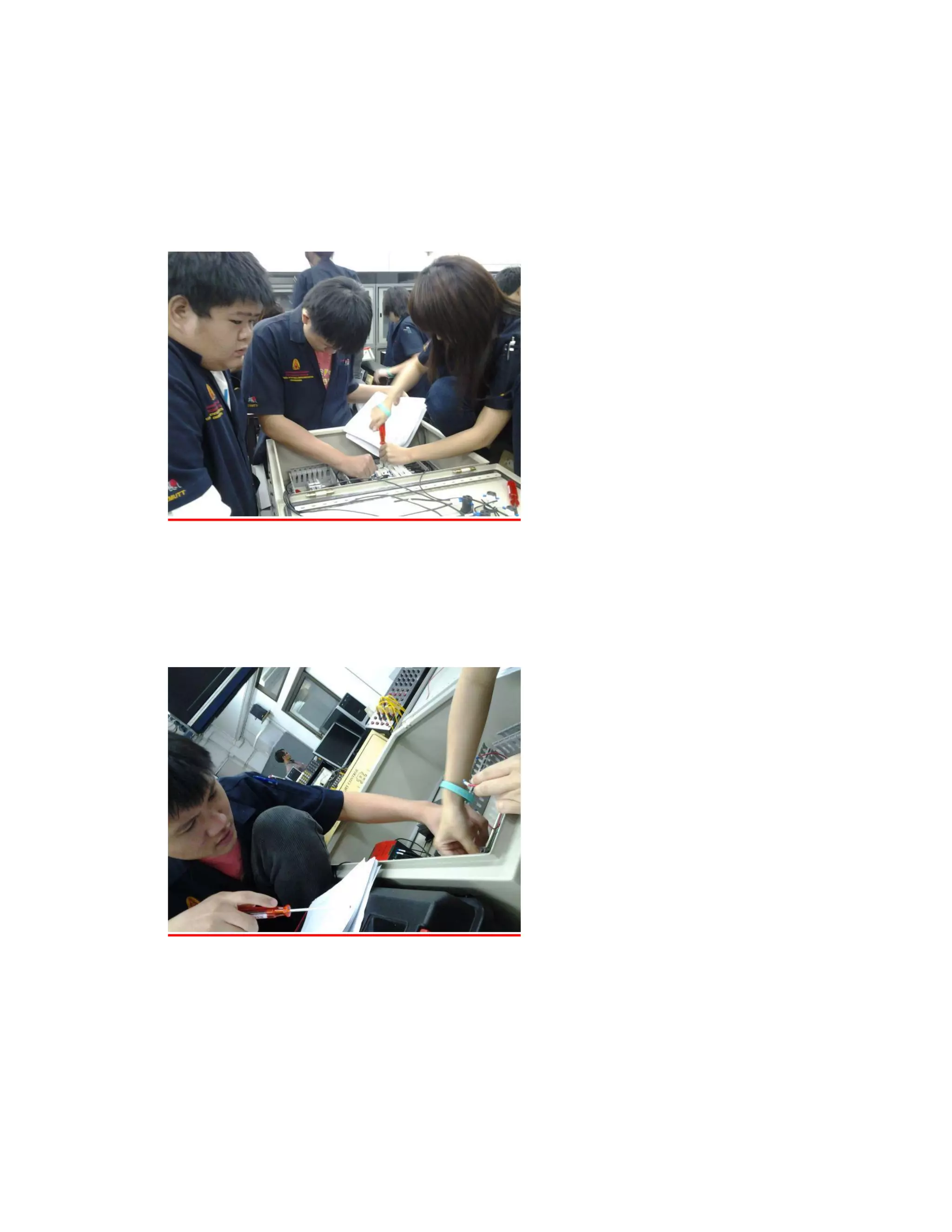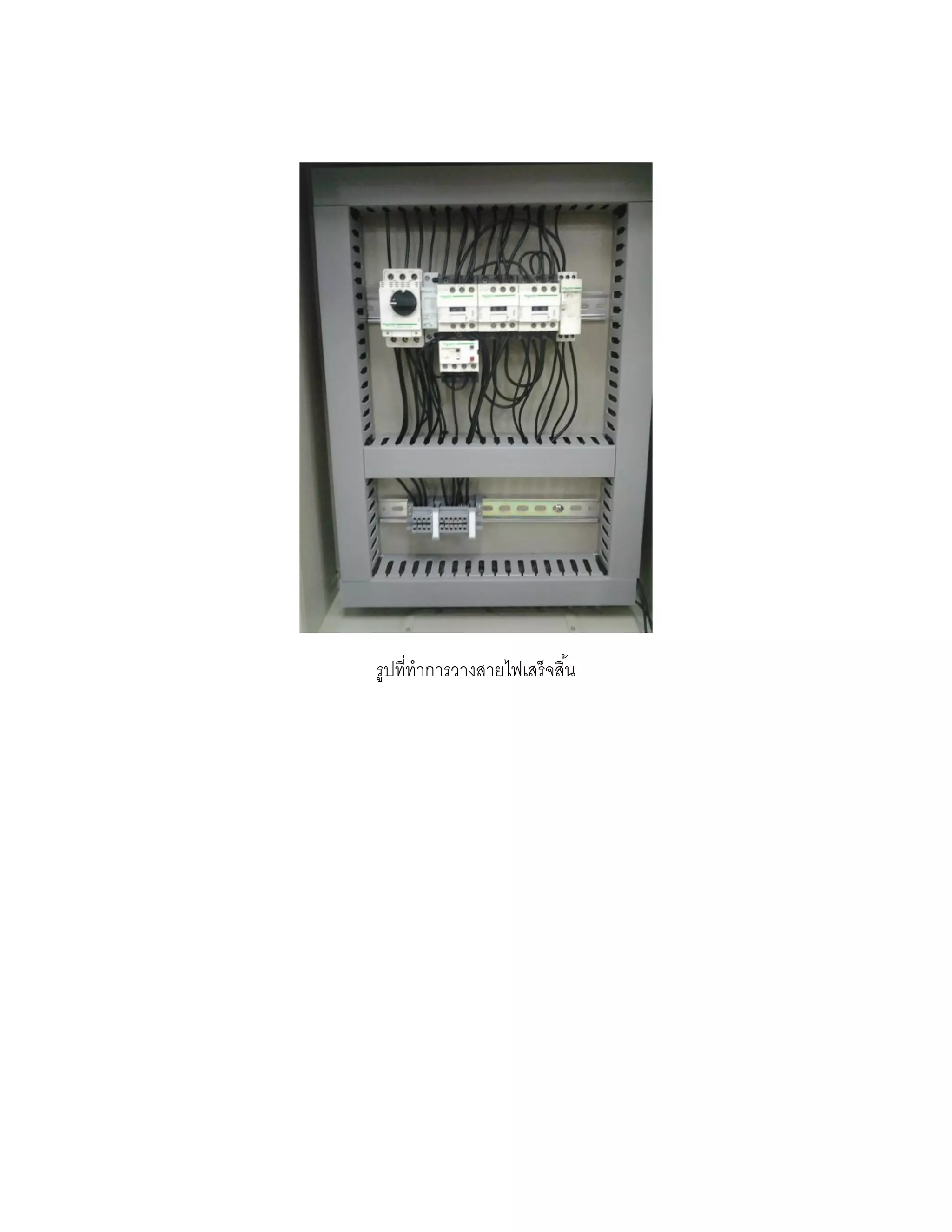 ้ 1.ศึกษาคูมือในการทาแลปแต่ละแลป ่ 2.เดินสายไฟตามวงจรแต่ละแลป 3.ตรวจสอบความถูกต้ องว่าสายไฟที่ตอเชื่อมกันหรื อไม่ ่ สรุป ซึงในการทาแลปในครังนี ้กลุ่มของข้ าพเจ้ าทาไม่ครบทุกแลปเหลือเพียงแลป3 เท่านันเนื่องจากเสียเวลาในการ ่ ้ ้ ทาแลป 5 เป็ นอย่างมากเพราะต้ องศึกษาเรื่ องในการต่อสายไฟใน Limit Switch และต้ องไขน๊ อตในราง หลอดไฟฟลูออเลนเซนต์ซงไขนาแหวนน๊ อตซ้ อนกันสองอันต้ องถอดมาใส่ใหม่ซงทาให้ เสียเวลาในการทาเป็ นอัน ึ่ ึ่ มากและเหตุผลอีกอย่างที่แลปที่ 5 ช้ า เพราะว่าต้ อง รื อทาใหม่เนื่องจากต้ องใส่ y-marker ทุกตัว และย ้า ้ หางปลาไม่ดีต้องย ้าใหม่ ในการทาแลปครังนี ้ได้ ความรู้ เพิ่มเติมมากมายทังด้ านวิชาการและประสบการณ์ชีวิต ้ ้ ด้ านวิชาการคือ ได้ รับความรู้เกี่ยวกับ การต่อสายไฟ ,การเรี ยนรู้สญญาลักษณ์ทางไฟฟา,การย ้าหัวปลา เป็ น ั ้ ต้ น และด้ านประสบการณ์ชีวิต คือ ความพยามยามอยูที่ไหน ความสาเร็จอยูที่นน ่ ่ ั่ เทคนิคที่ได้ การทาแลปในครังนี ้ ้ - ควรย ้าหางปลาตรงบริเวณเหล็กเท่านันเพราะว่าถ้ าย ้าหางปลาตรงพลาสติกจะทาให้ ย ้าไม่สนิทอาจทา ้ ให้ หลุดได้ ง่ายขึ ้น - ควรวางสายไฟไว้ ในรางและเดินสายไฟให้ เรี ยบร้ อย - ควรวางแผนในการวางสายไฟก่อนเพื่อความรวดเร็วในการวางสายไฟ - การติด y-marker นันควรติดทุกสายไฟเพื่อง่ายต่อการไล่สายไฟว่าต่อถูกหรื อไม่ ่ - เวลาทาสาย Lan ควรทาการจัดสีให้ ถกต้ องตาม คูมือในการทาแลปในครังนี ้และควรย ้าหัวสาย Lan ู ่ ้ ให้ แน่นๆ เพื่อ ให้ ได้ ใช้ งานอย่างเต็มประสิทธิภาพของสาย Lan - ได้ ร้ ูสญญาลักษณ์ทางไฟฟามากขึ ้น ั ้