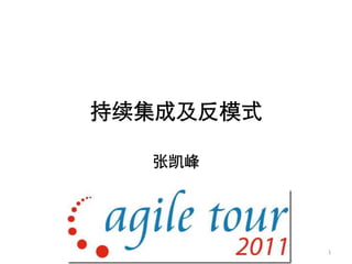持续集成是一种软件开发实践,通过频繁的集成和自动化测试提高软件质量并缩短发布周期。文档讨论了持续集成的原则和反模式,并提供了改进的最佳实践。成功的持续集成需要最小化依赖、独立构建、自动化反馈和测试等策略。