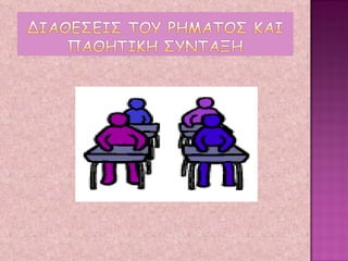 Πόσες διαθέσεις υπάρχουν; Οι διαθέσεις του ρήματος είναι τέσσερις: ενεργητική , παθητική, μέση και ουδέτερη