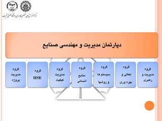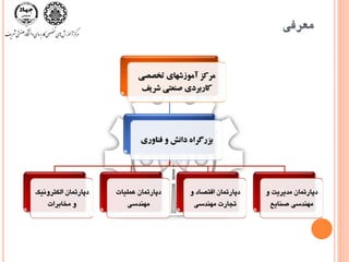 صنعتی کاربردی فناوری و دانش بسرگراه الكتزًٍيك دپارتواى هخاتزات ٍ عوليات دپارتواى هٌْذسی ٍ التػاد دپارتواى هٌْذسی تجارت ٍ هذيزيت دپارتواى غٌايع هٌْذسی