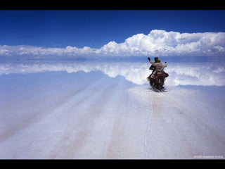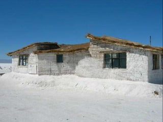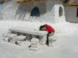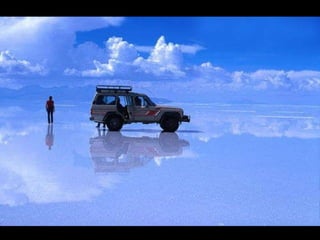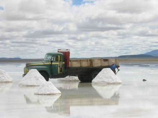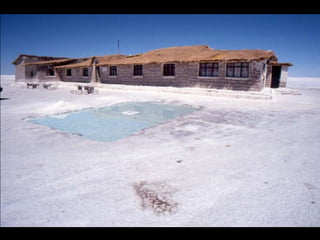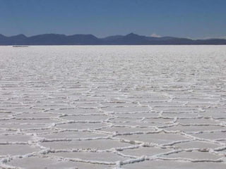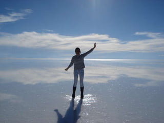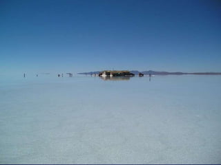 烏尤尼鹽沼是位於玻利維亞最大的鹽沼,面積達10,582平方公里,海拔約3,650公尺,是世界七大自然奇觀之一。 rainy season 會使其變成鏡面湖泊,而其鹽層厚度可達10公尺。主要出產石膏、岩鹽和鋰,傳統的製鹽方法使鹽易於運輸並用於建築鹽旅館。