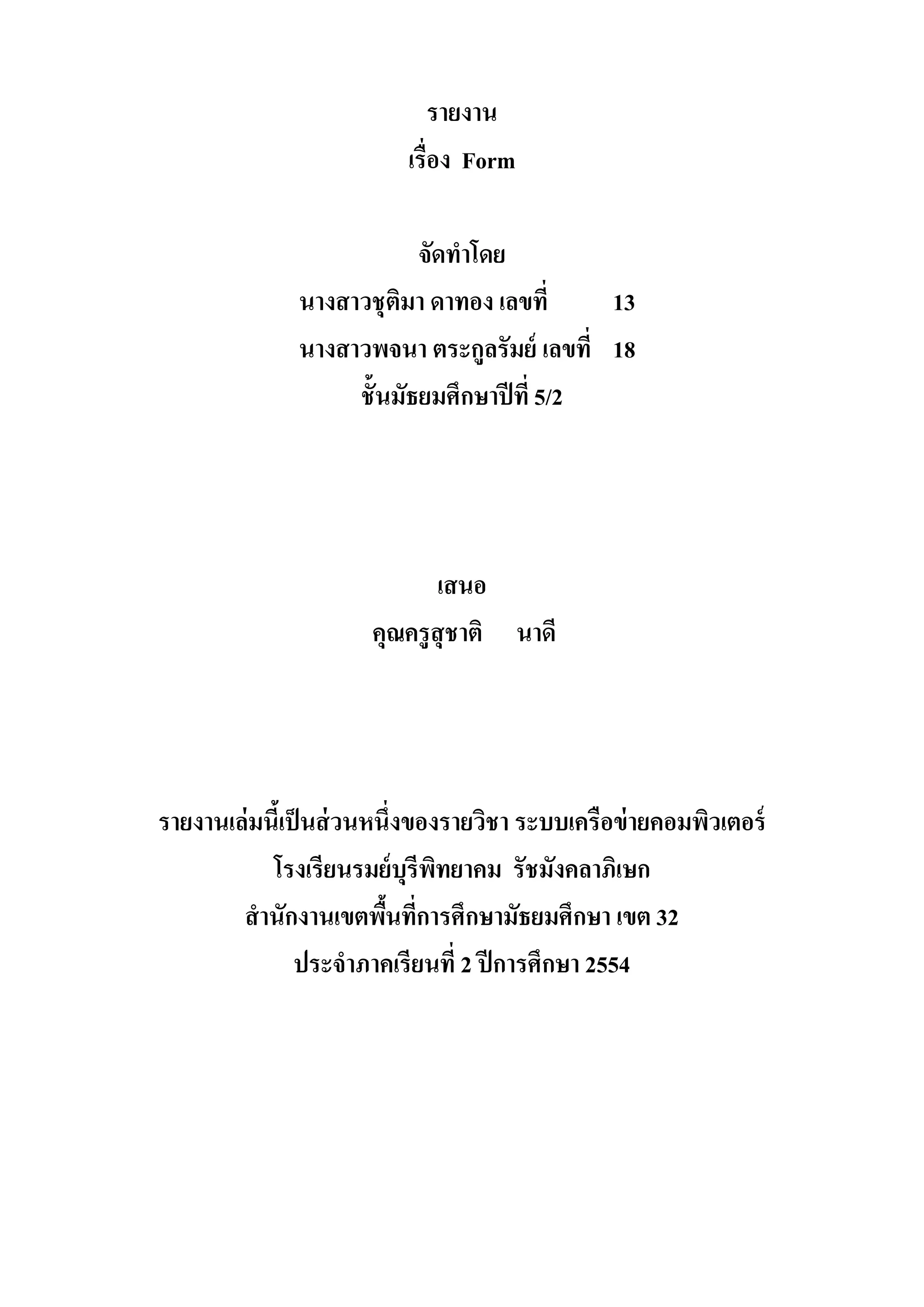 เป็น Form ที่ผเู ้ ข้าชมไม่สามารถมองเห็นได้ ไว้ใช้ comment หรื อส่ ง Value ใหโปรแกรมเท่าน้ น