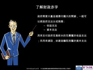 本文探讨了财政赤字的成因及政府应对策略,包括收益支出和资本支出的分类,以及财政收入来源。政府面对支出超出收入时,通常通过发行公债或增加货币供给来筹措资金,而市场筹资相对更为可取,因为增加货币供给可能导致通货膨胀。为控制赤字,政府必须在借贷上保持节制,以避免利率上升和信用评级下降。