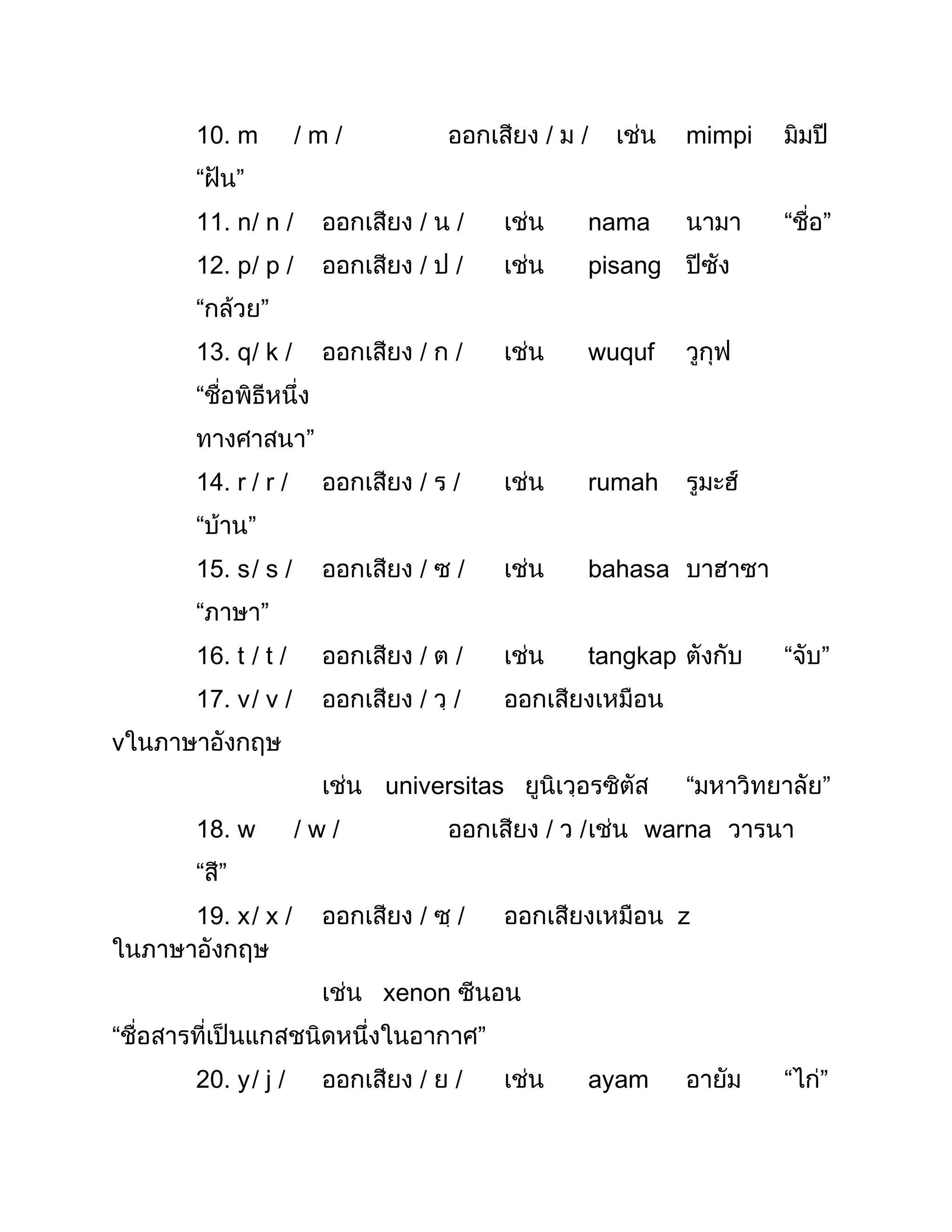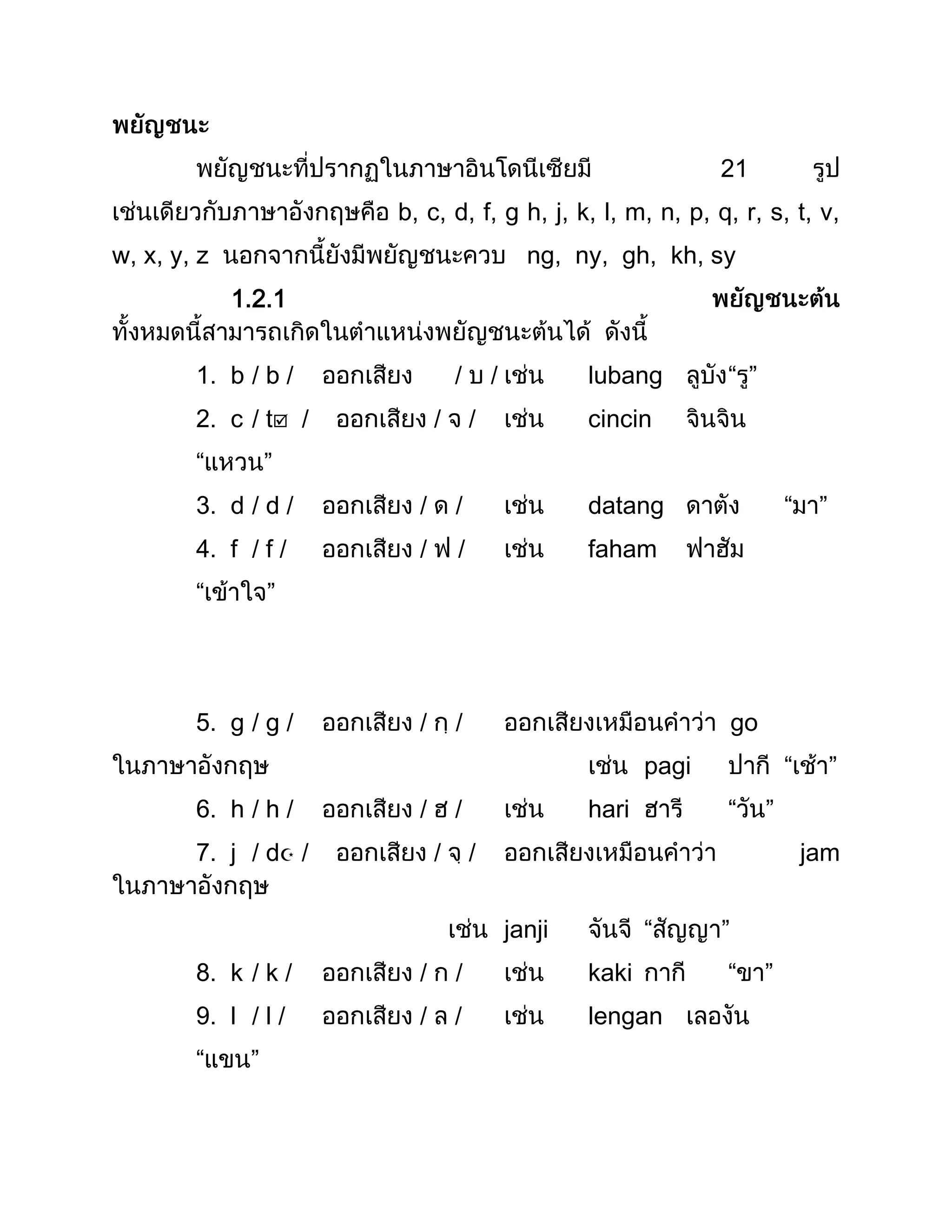 b, c, d, g, h, j, k, l, m, n, p, r, s,t, w, y, ng, ny