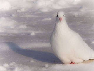The painting depicts a snowy landscape with trees covered in snow and a small cottage in the distance. The artist uses only shades of white and light gray to portray the wintry scene, conveying the beauty and serenity of a snow-covered landscape with minimal but evocative brushstrokes. Overall the piece captures the stillness and tranquility of a winter day through its monochromatic color palette and impressionistic style.