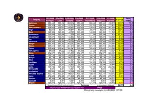 This document appears to be a table listing the player names and scores of an online game over multiple dates from February 23, 2009 to March 1, 2009. It shows the player name, scores for each date, total score by March 1, and point increase from the start date. The top player "fantomas" had a score increase of 84,576 points, while "magi" had the highest percentage increase of 4.40.